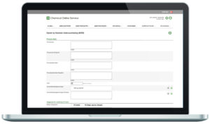 Kemiske risikovurderinger (KRV) modulet i Chemical Online Service (COS) på computer.